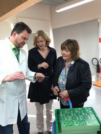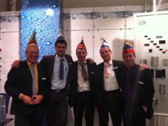 Uwe Schöller, Steve Henriß und Kevin Jakob zusammen mit der apra-gruppe auf der Electronica 2012 in München.