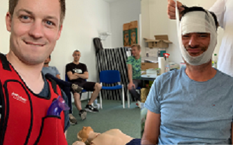 Die MKI-Gang war heute gemeinsam bei einem Erste Hilfe Kurs zugange. Neben diversen Tipps und Tricks im Umgang mit verletzten Personen, haben wir Uwe's Kopf auch noch neu designt.