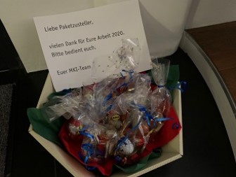Für unsere Paketzusteller ist bei MKI heute schon Weihnachten...ohne all die fleißigen Mitarbeiter der Zusteller geht nichts. Kontaktlos eine kleine Freude machen.