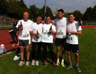 Saumäßig heiß her gings am Freiburger Halbmarathon! Stephan Konz und Uwe Schöller (auf dem Foto mit der Geschäftsleitung Hubert Schlegel und Eugen Molz) starteten im 70-köpfigen FSM Team und mussten sich wie der Rest der gut 6000 Läufer unter der brennenden Frühjahrssonne ins Ziel quälen. Tolle Unterstützung gab es von sage und schreibe 42 Bands entlang der Strecke. Mit 2h:10min für Stephan Konz und 1h:57min für Uwe Schöller waren die MKIler letztendlich zufrieden. Auf gehts zu neuen Zielen: Stuttgart Halbmaraton am 29.Mai und Neuffener Berglauf am 12.Juni. Wer mitlaufen will ist herzlich eingeladen.